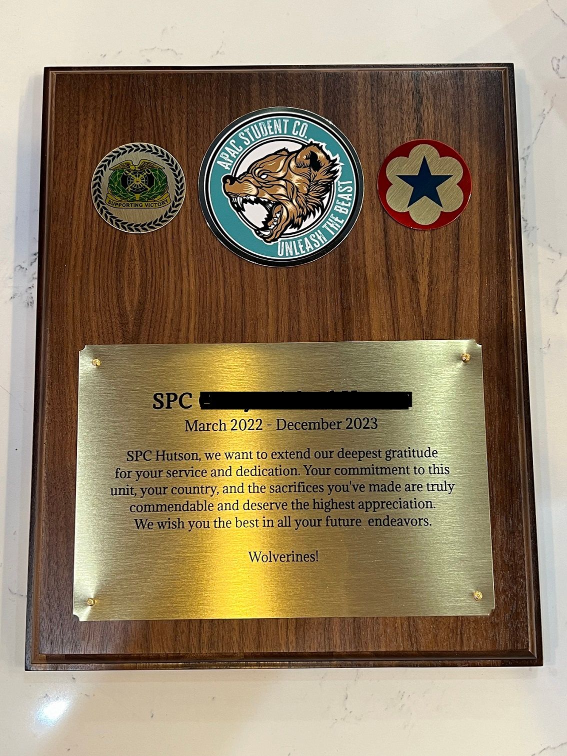 Memorable Going Away Plaque with Your Custom Logo. Please send us your verbiage to SBECKY@SHIPSHATCH.COM Call: 703-413-6289