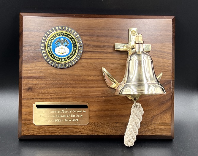 Walnut plaque 8″x10″, Solid Brass Bell 4″